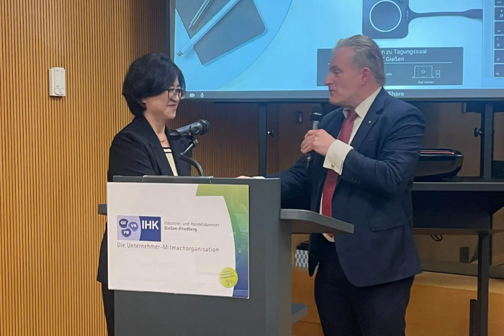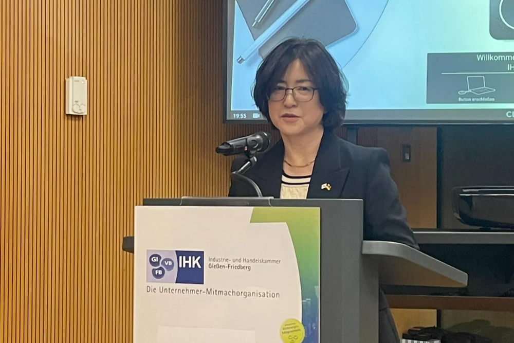 김은정 총영사는 3.25.(수) 기센-프리드베르크 상공회의소(IHK) 총회에 발제자로 참석하여 올해 10.29.(목)~31.(토)간 서울에서 개최될 제19차 독일 아태비즈니스회의(APK, Asien-Pazifik-Konferenz der Deutschen Wirtschaft)에 기센 지역 기업인의 참여를 독려하고 한-기센 간 협력 강화 방안을 제안하였습니다.