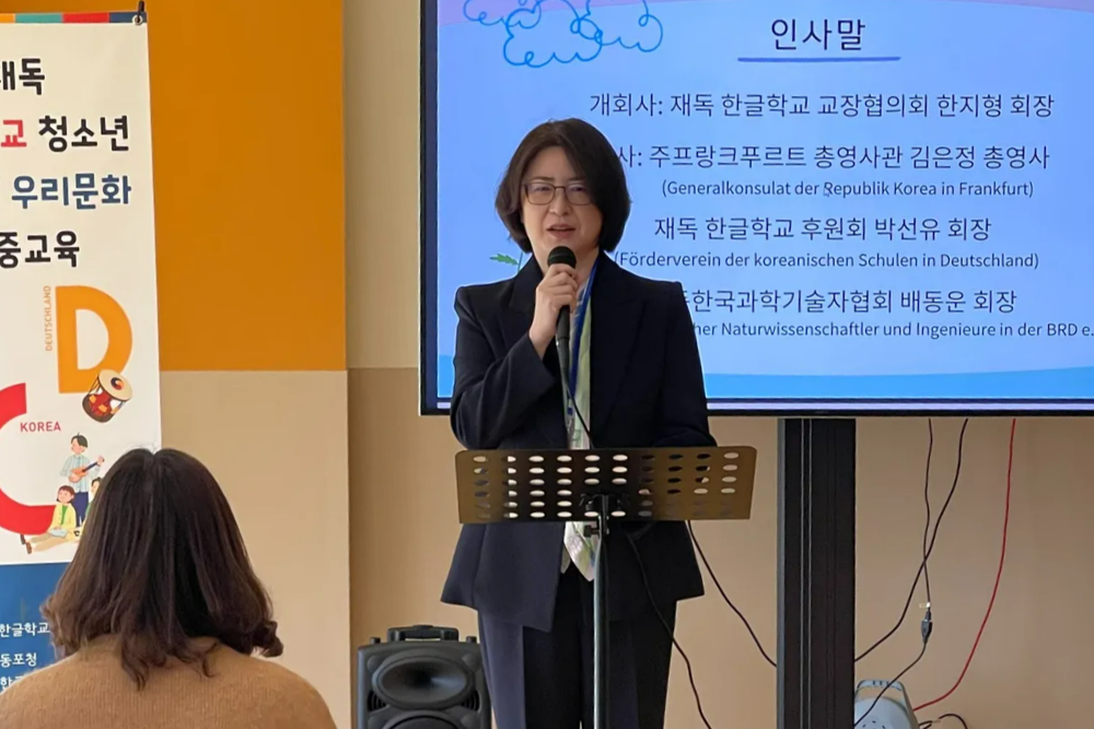 김은정 프랑크푸르트 총영사는 3.29.(일)부터 4.2.(목)까지 4박 5일간 헤센주에서 개최되는 「재독 한글학교 청소년 우리말·우리문화 집중교육」 개회식에 참석하여, 집중교육에 참석한 재외동포 청소년 55명을 격려하였습니다. 김은정 총영사는 축사를 통해 이번 집중교육이 한국어뿐 아니라 정체성을 기르는 소중한 시간이 되기를 바란다고 전하였습니다. 앞으로도 프랑크푸르트 총영사관은 한글학교의 발전과 재외동포 학생들의 성장을 적극적으로 지원하도록 하겠습니다.